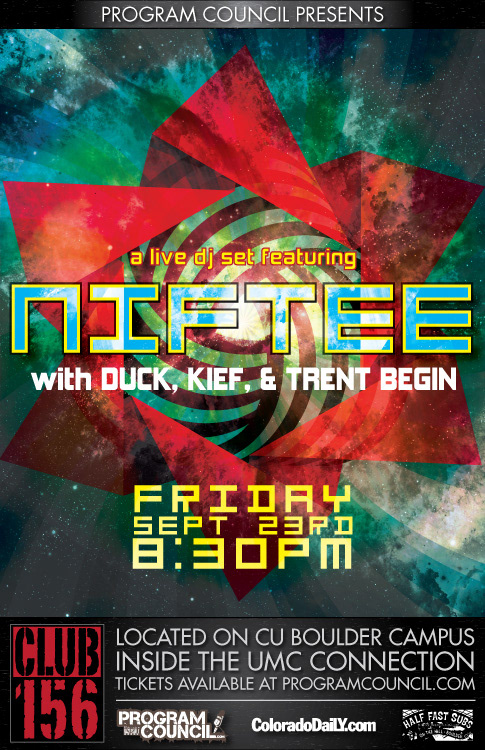 Poster for DJ Night in CLUB156, featuring Niftee, Duck, Kief, & Trent Begin. Fall 2010.